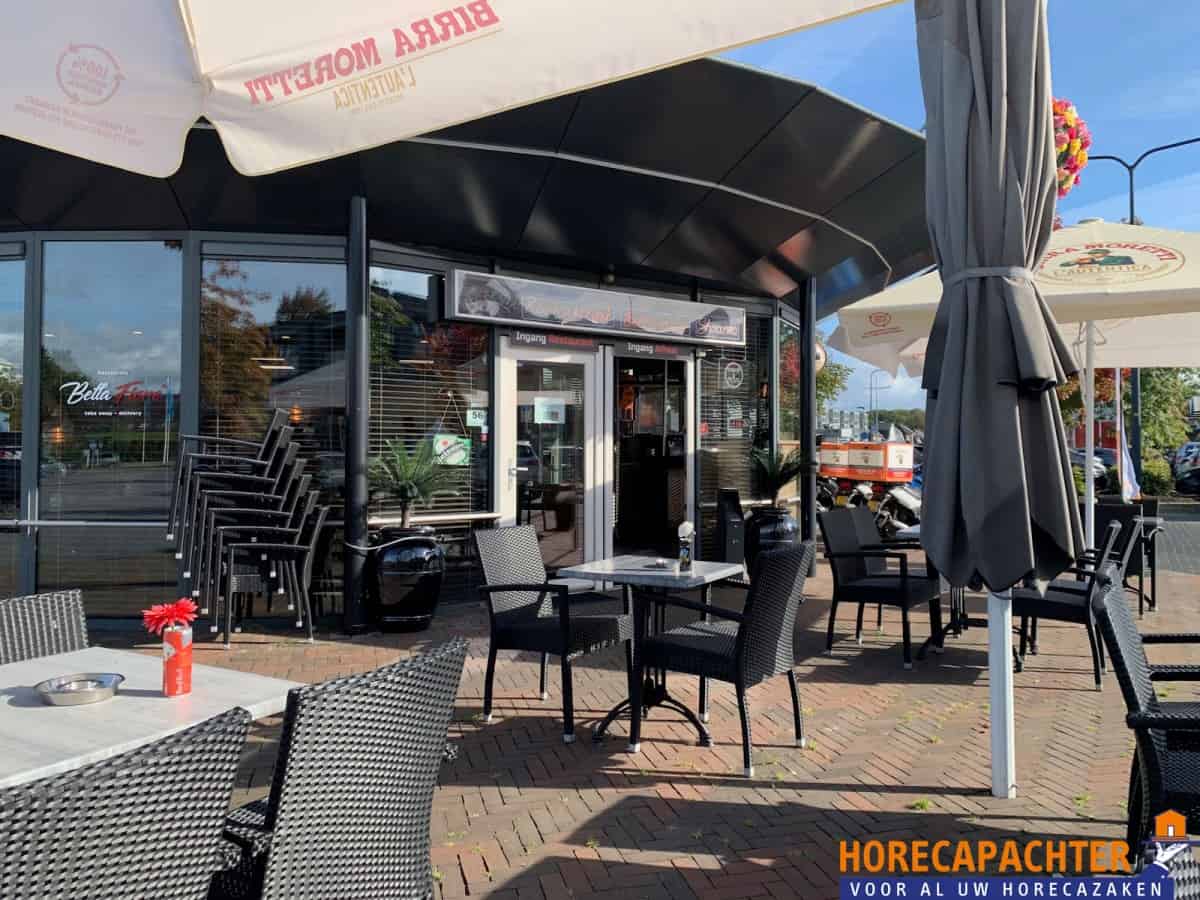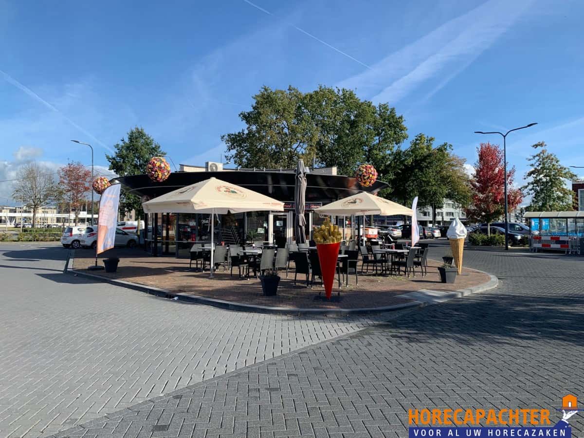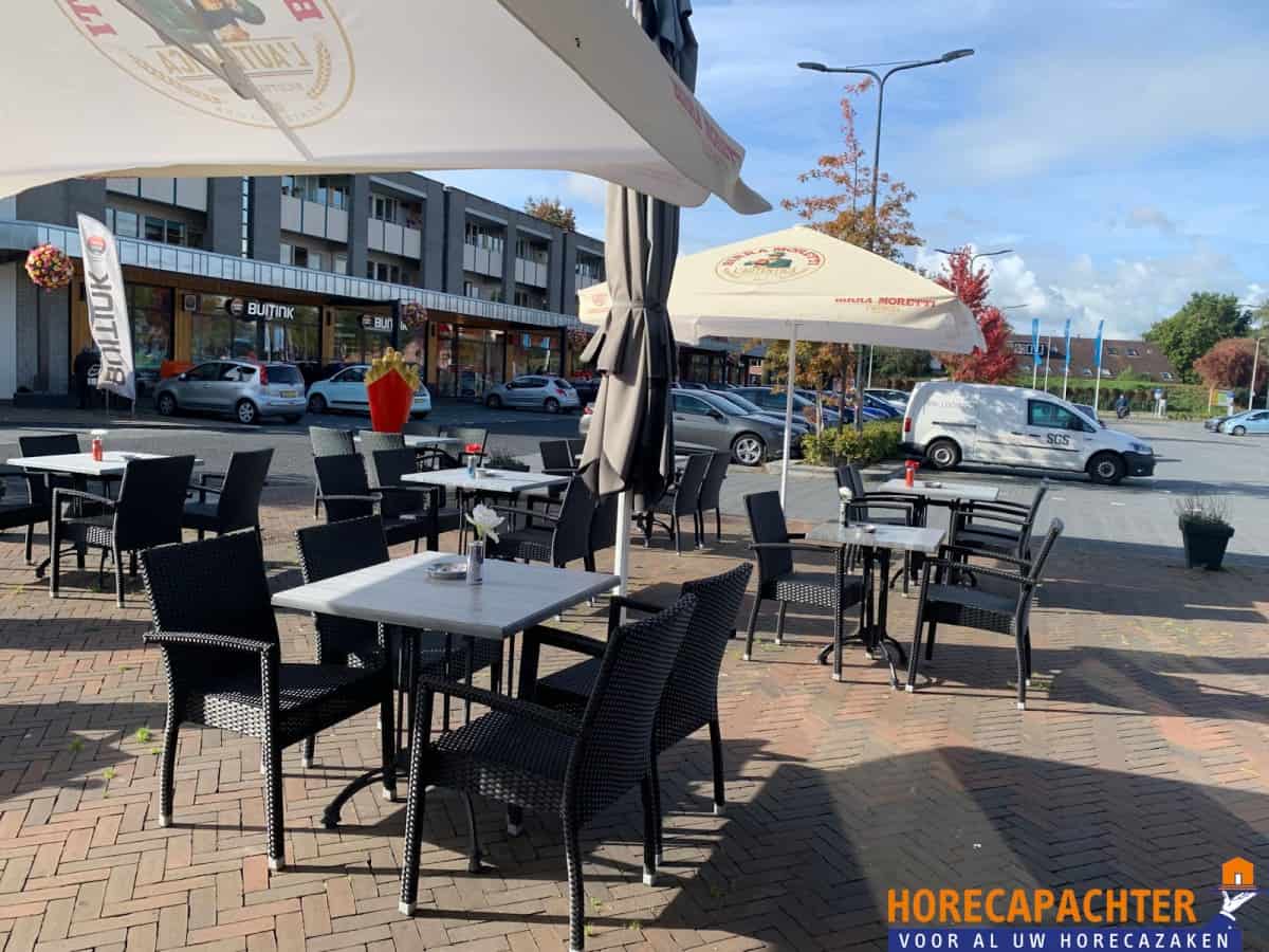Aan de voorzijde is een zeer mooi ruime terras met circa 40 terrasstoelen maar er is voldoende mogelijkheid om dit uit te breiden.