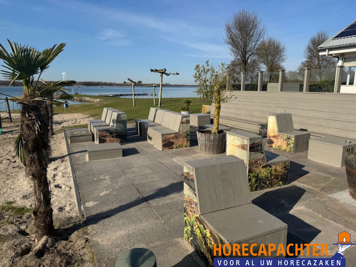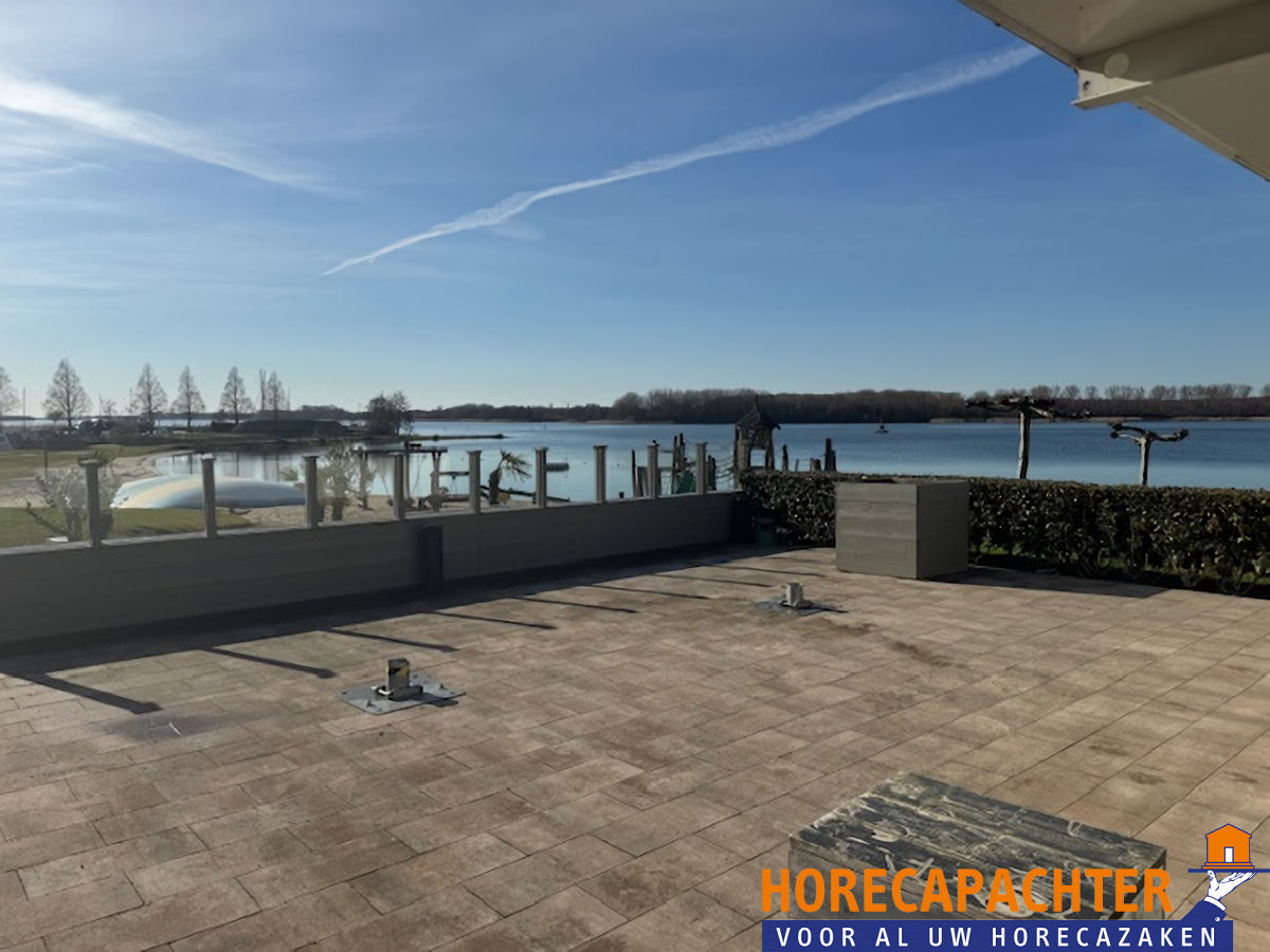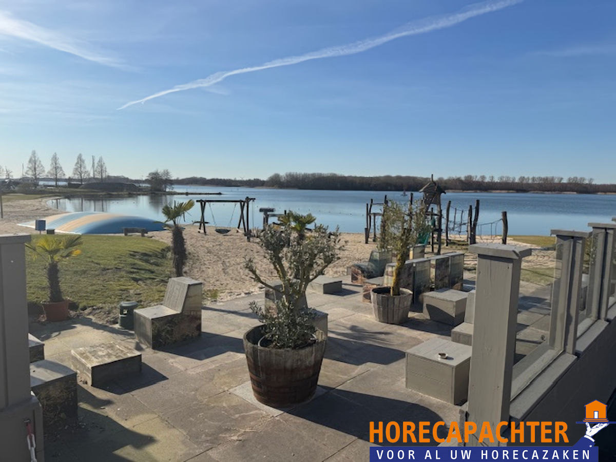 Prachtig ingerichte horeca / beachclub. Centrale ingang met doorgang naar de receptie en loket voor de cafetaria. Doorgang naar het restaurant met ruime uitgifte bar en doorgang naar de keuken. Veel ramen met uitzicht over het water. Het restaurant heeft circa 70 zitplaatsen. Ruime keuken en kelder met separate leveranciersingang. De keuken is meer dan compleet en is voorzien van alle benodigde apparatuur.