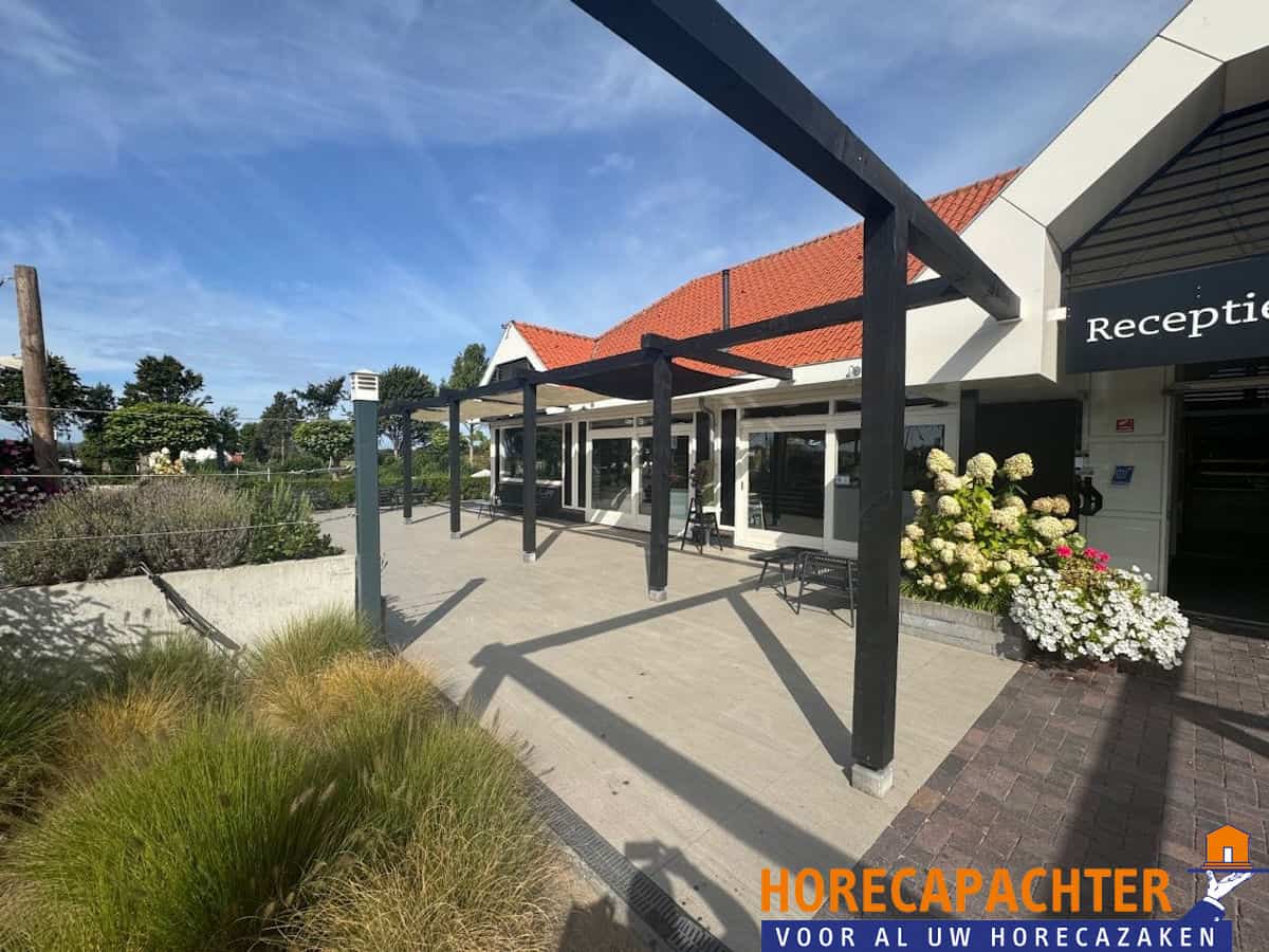 Prachtig ingerichte horeca. Centrale ingang met de receptie, winkel en afhaalmogelijkheid en halfopen keuken. Nette uitgiftebar. Het restaurant is ruim opgezet en heeft circa 60 zitplaatsen. Deur naar hoger gelegen terras met circa 50 zitplaatsen met een mooi uitzicht over de dijk en de jachthaven. Er is een groot terras aan de voorzijde van het centrumgebouw en daarnaast een groot terras grenzend aan het buitenbad.
