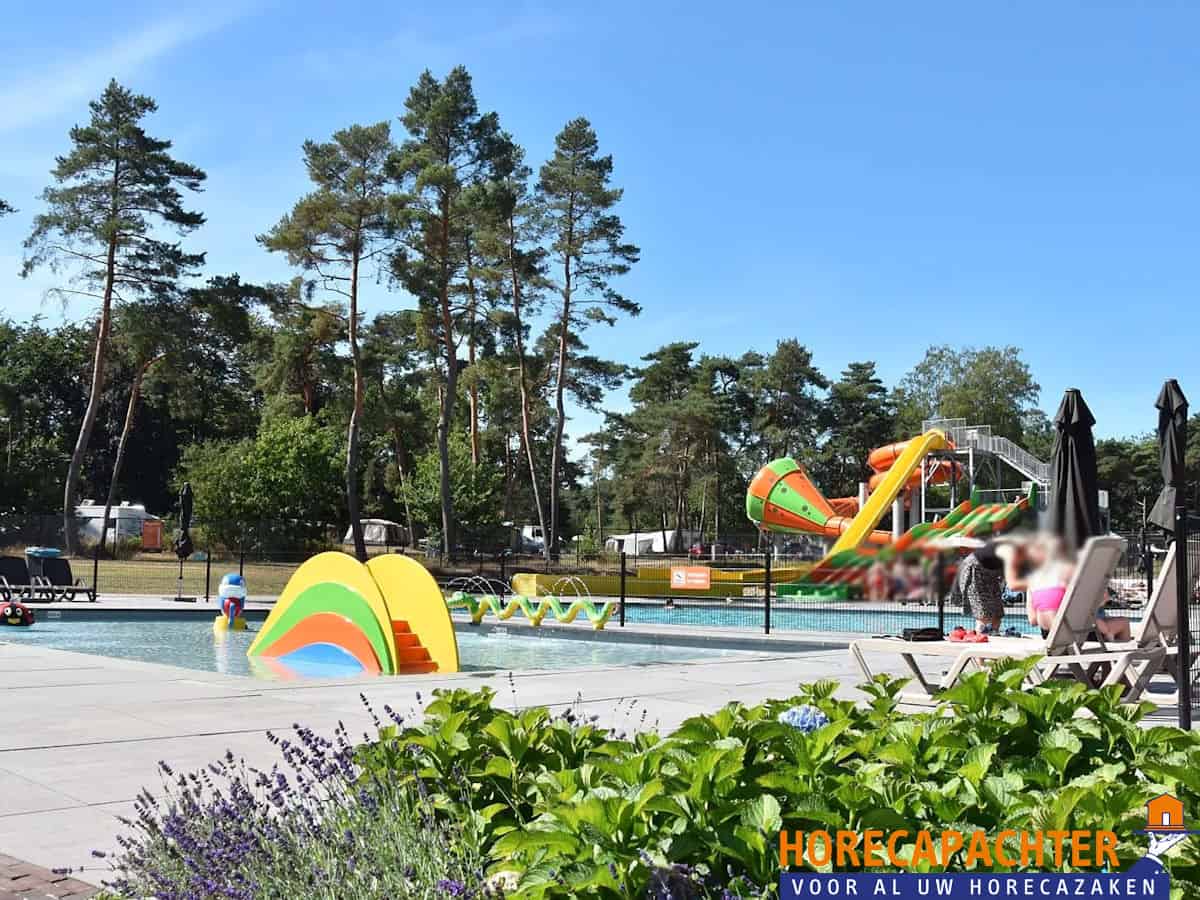 De horeca omvat een groot café-restaurant, een groot terras aan de voorzijde en een groot terras aan het zwembad met buitenbar en softijsmachine. Aangrenzend aan de horeca bevinden zich 8 geheel nieuwe bowlingbanen. Einde van het jaar is het nieuwe binnenzwembad klaar met spectaculaire glijbanen.